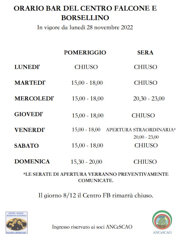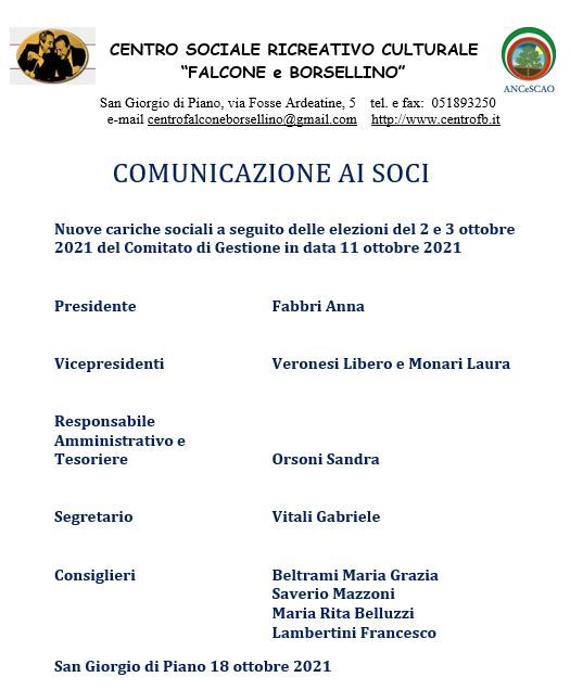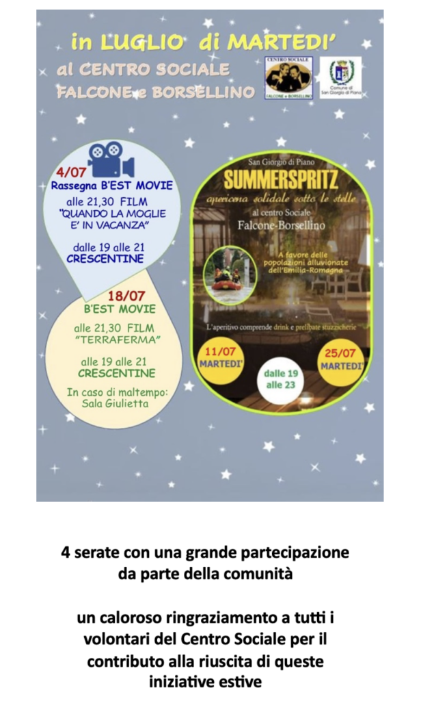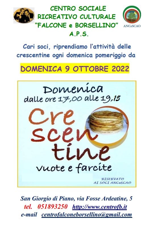 CENTRO SOCIALE RICREATIVO CULTURALE “FALCONE E BORSELLINO” - San Giorgio di Piano (BO) tel. 051893250