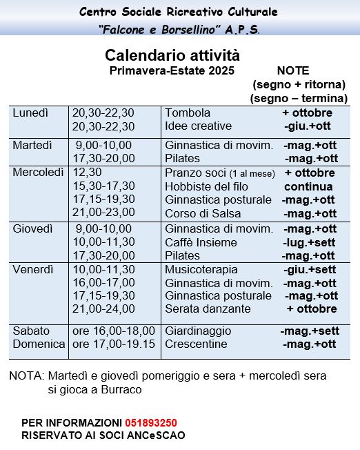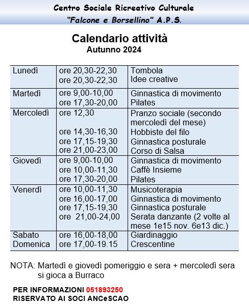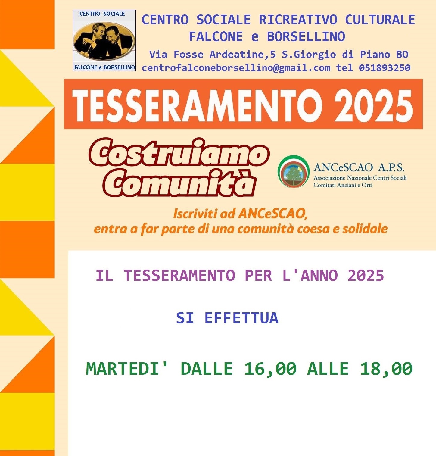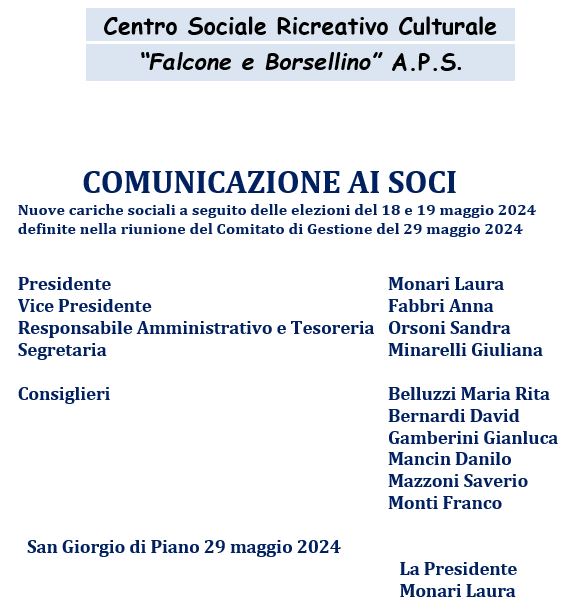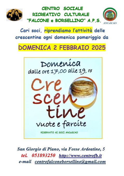 CENTRO SOCIALE RICREATIVO CULTURALE “FALCONE E BORSELLINO” - San Giorgio di Piano (BO) tel. 051893250