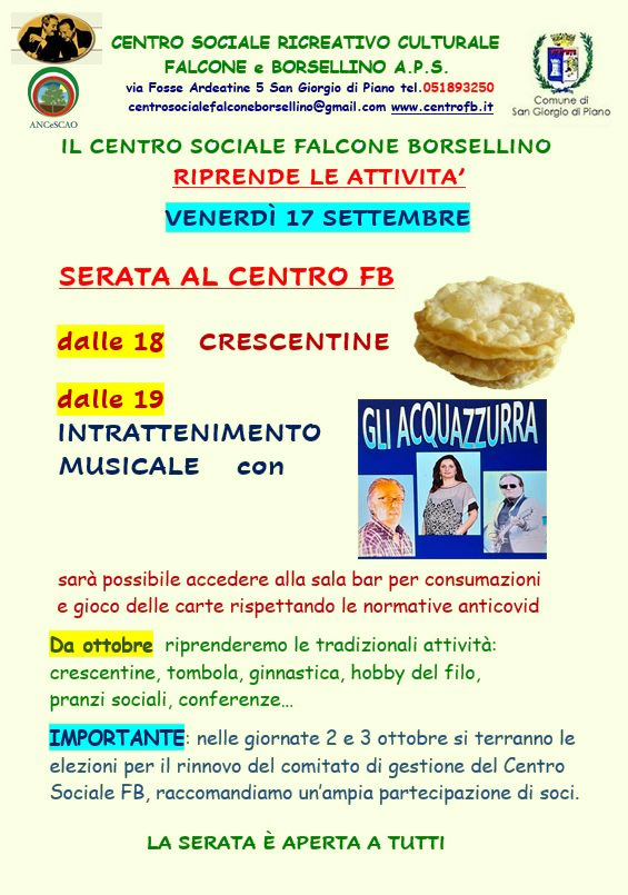 RIPRESA ATTIVITA’ 17 SETTEMBRE 2021 UNA SERATA INSIEME