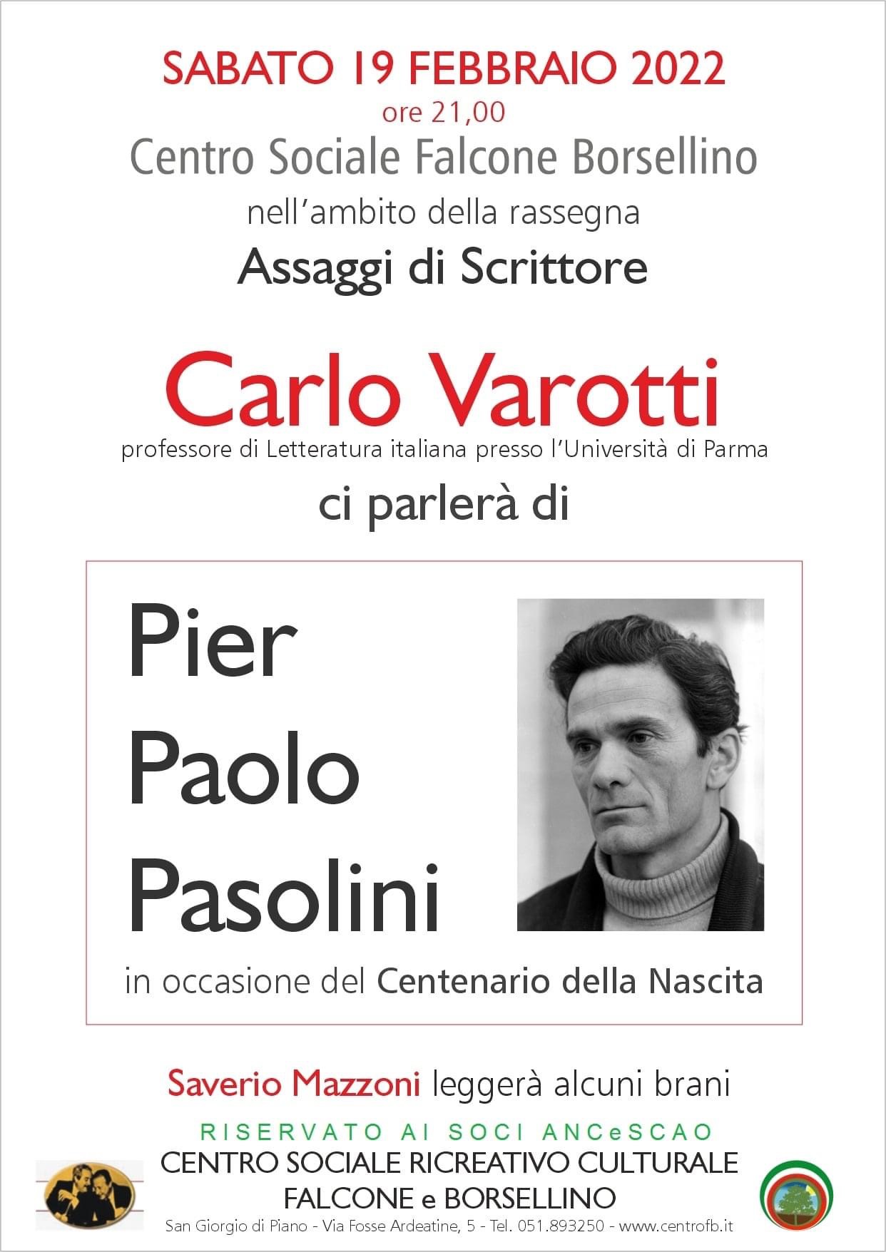 Assaggi di scrittore: Carlo Varotti ci parlerà di Pier Paolo Pasolini in occasione del centenario della nascita.