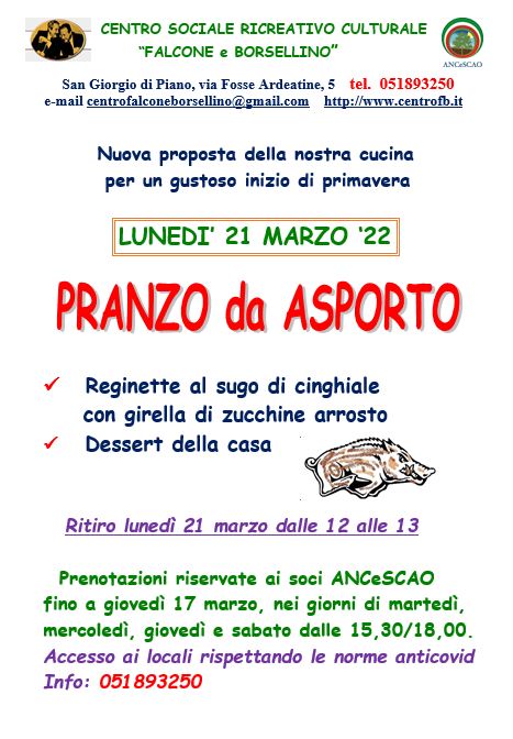 PRANZO D’ASPORTO LUNEDÌ 21 MARZO